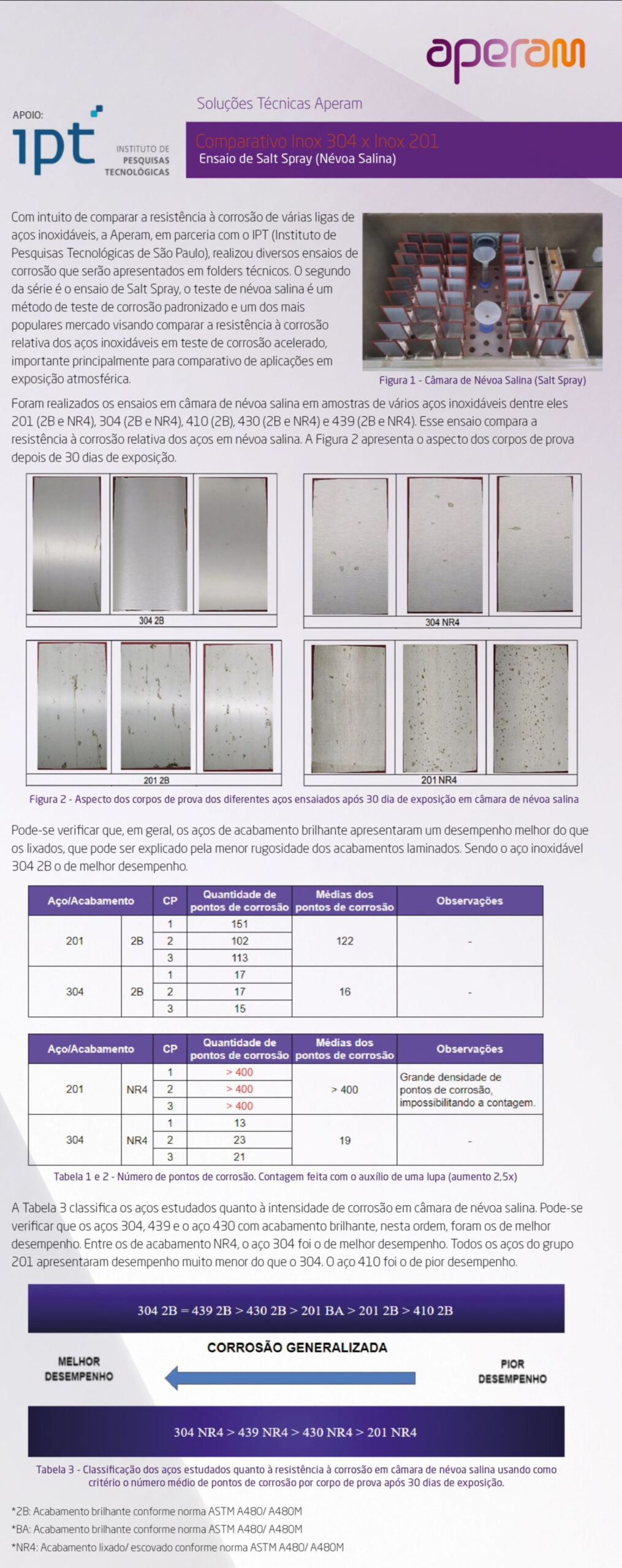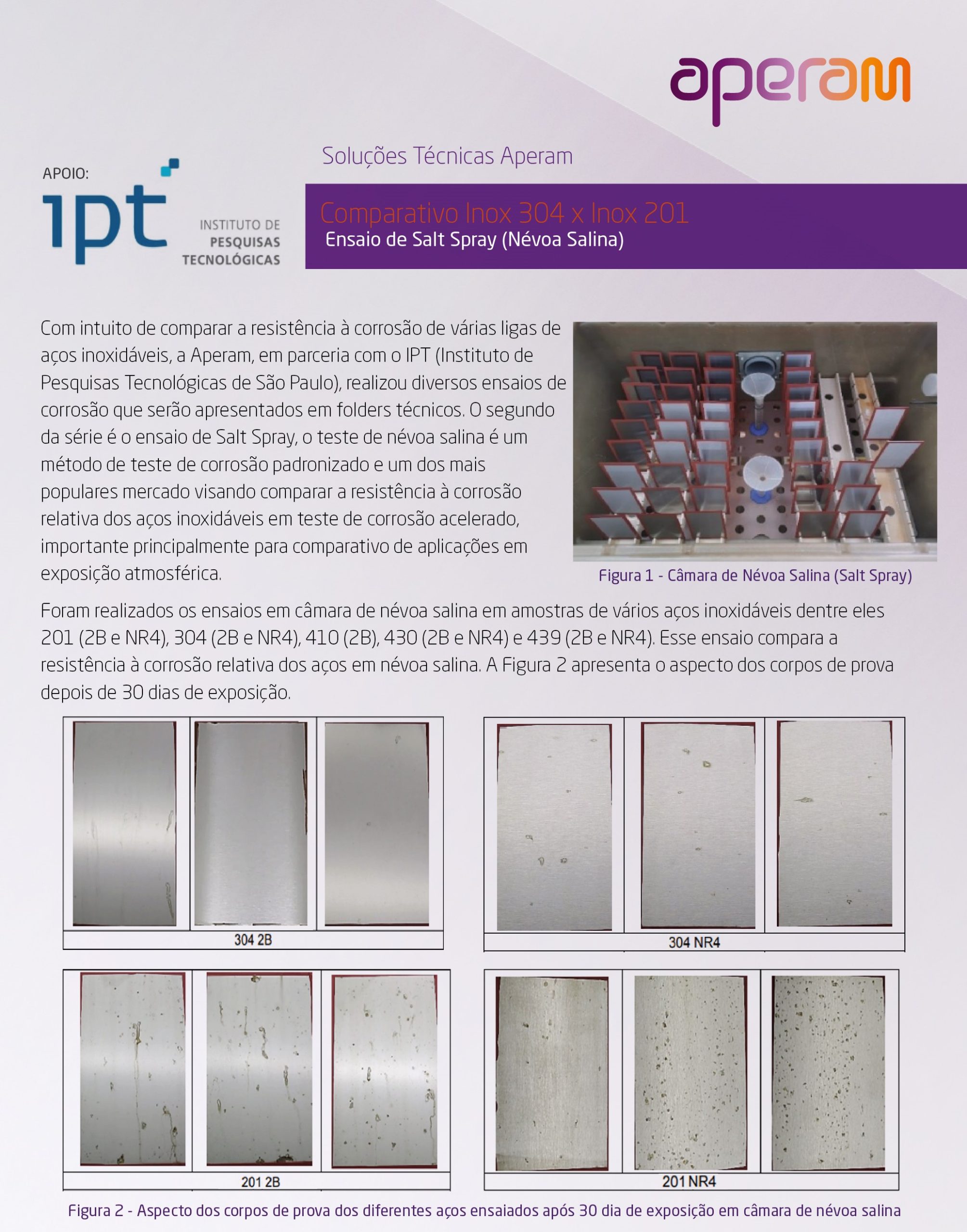 Comparativo Inox 304 X Inox 201 - Ensaio Salt Spray (Névoa Salina)