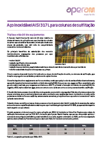 Aço inoxidável AISI 317L para colunas de sulfitação