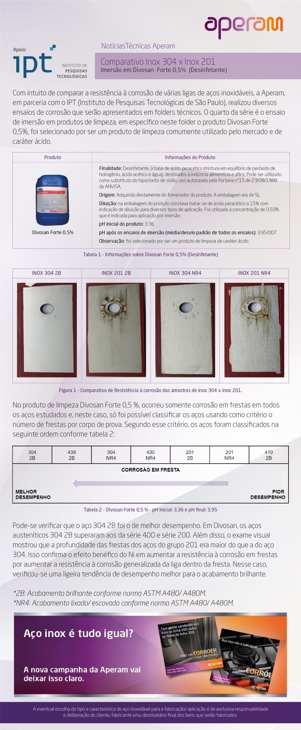 Comparativo Inox 304 X Inox 201 - Imersão em Divosan Forte 0,5% (Desinfetante)