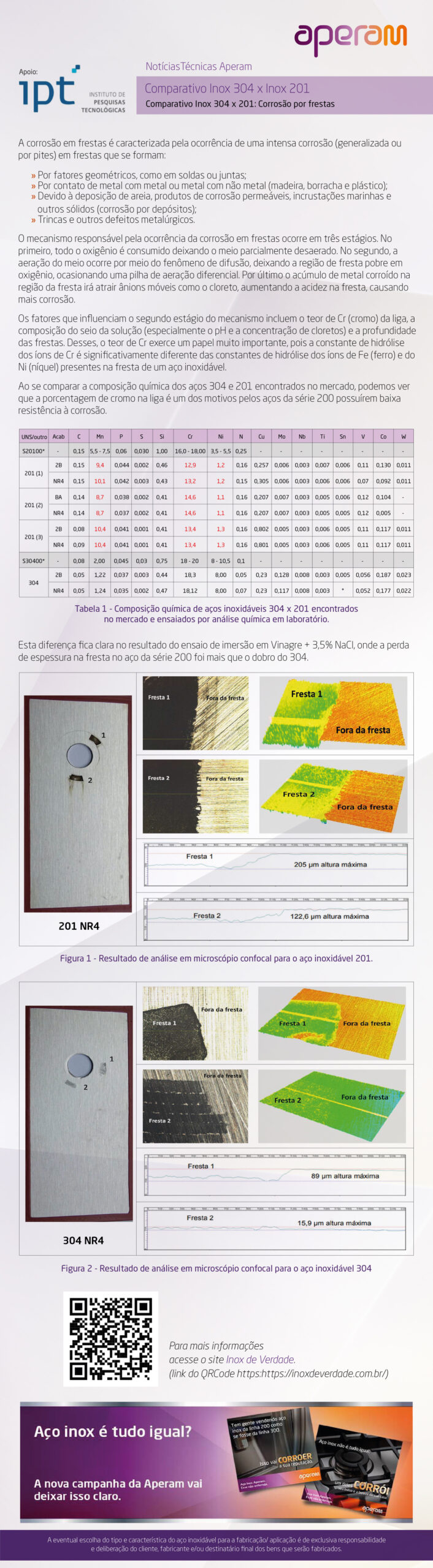 Comparativo Inox 304 x Inox 201: Corrosão por frestas