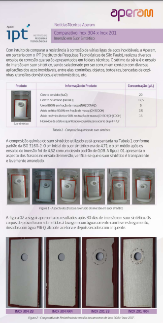 Comparativo Inox 304 x Inox 201: Imersão em Suor Sintético