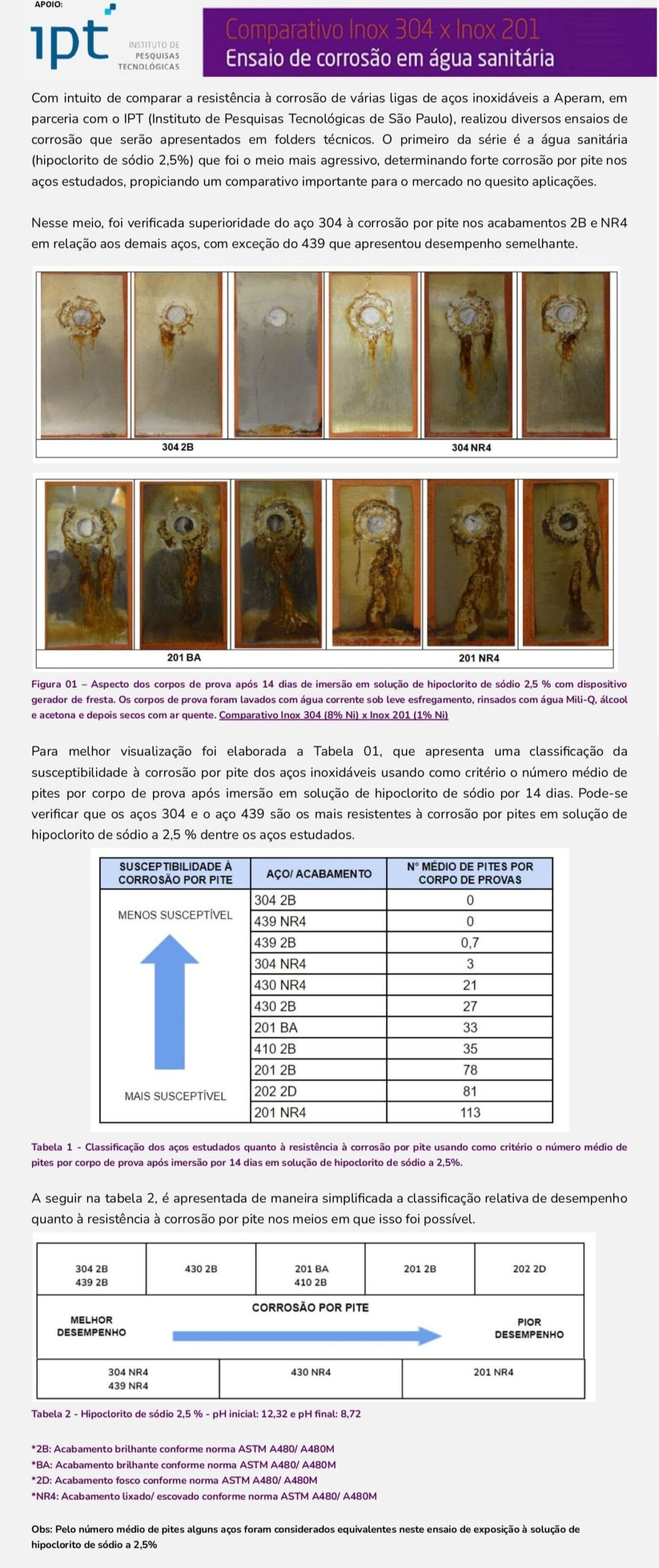 Comparativo Inox 304 x Inox 201: Influência do Níquel na resistência à corrosão.