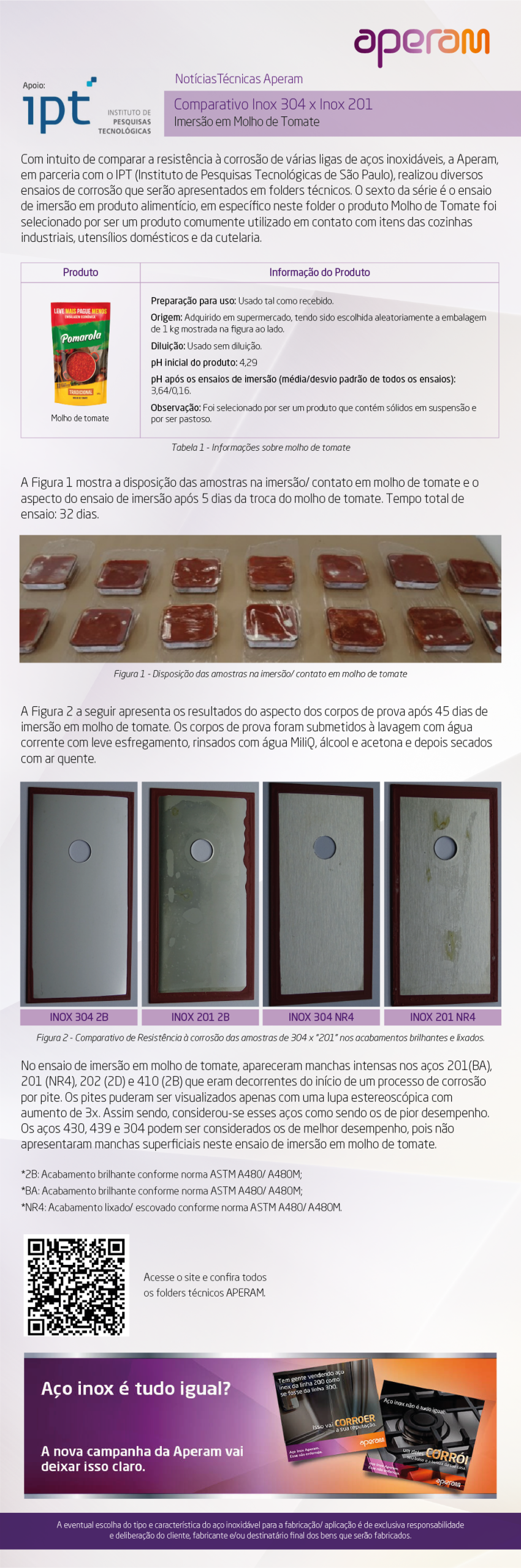 Comparativo Inox 304 X Inox 201 - Imersão em Molho de Tomate