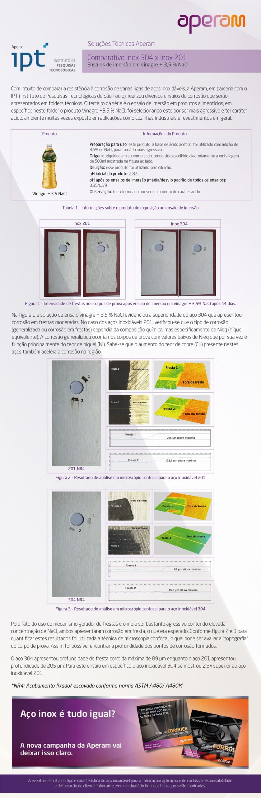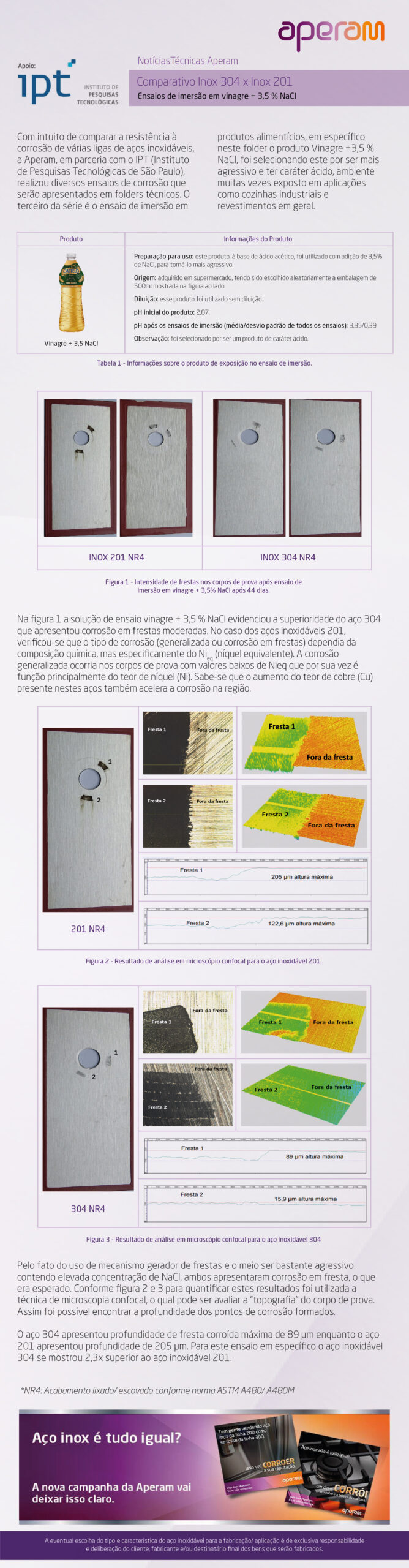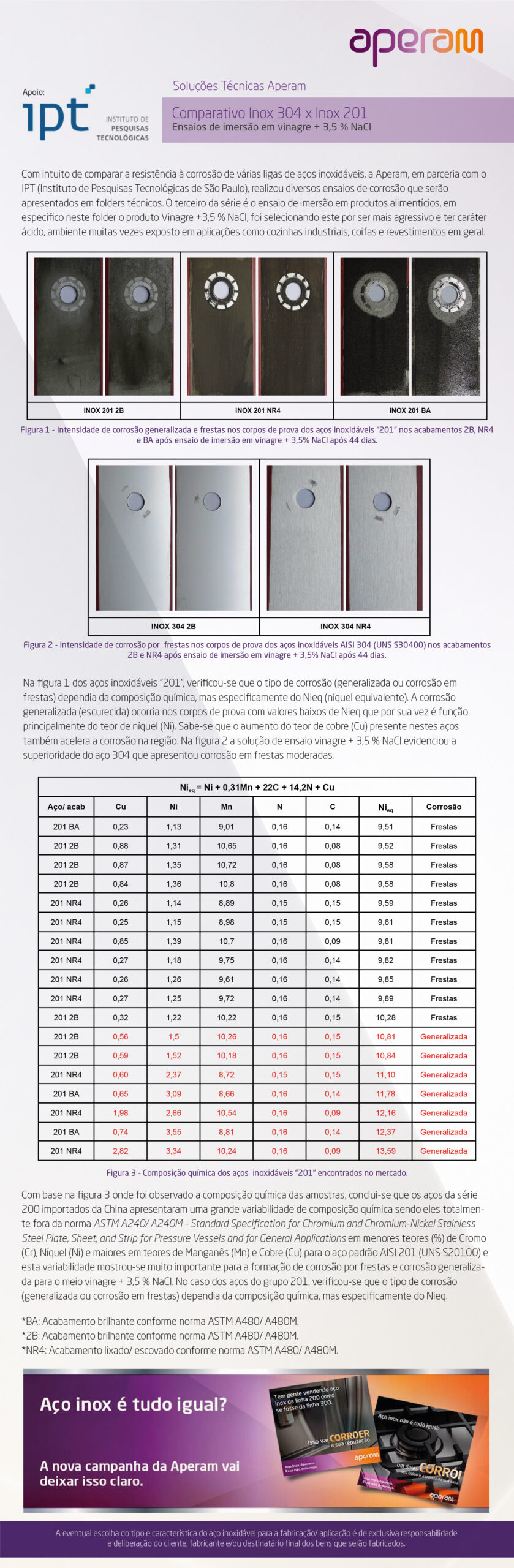 Comparativo Inox 304 X Inox 201 - Ensaios de Imersão em Vinagre + 3,5% NaCl