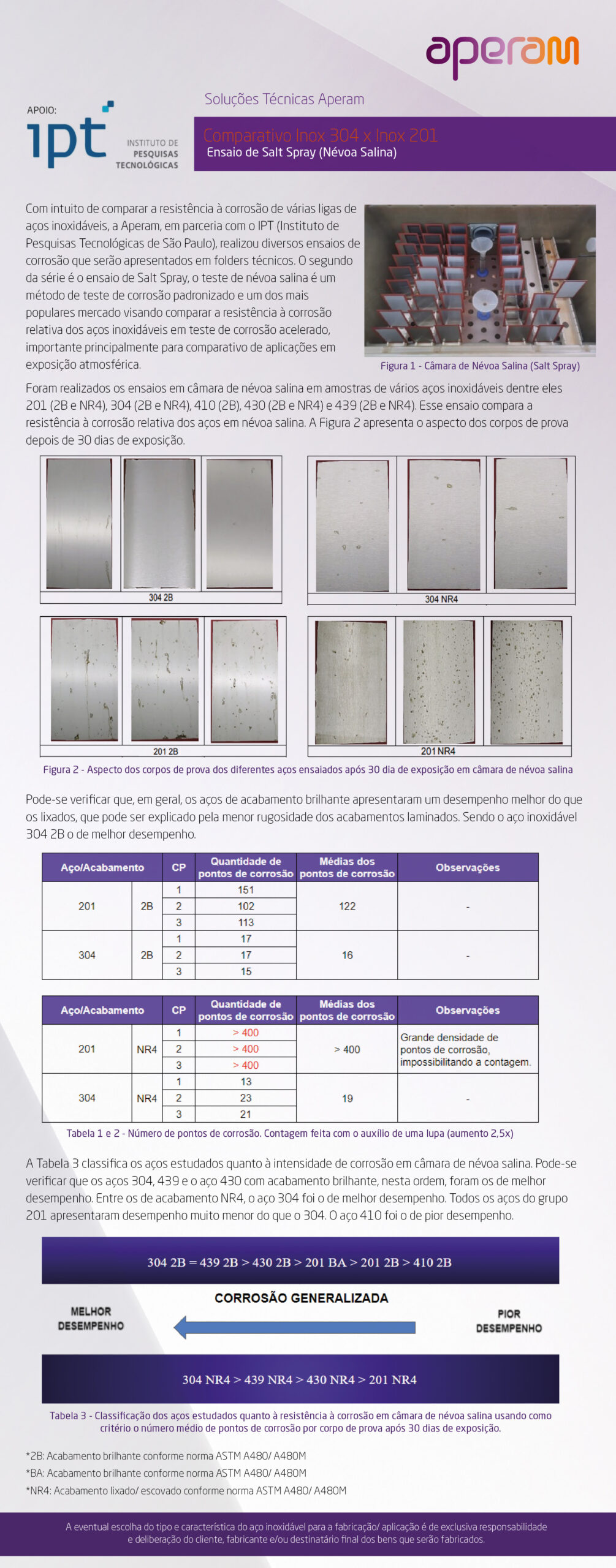 Comparativo Inox 304 x Inox 201 - Salt Spray