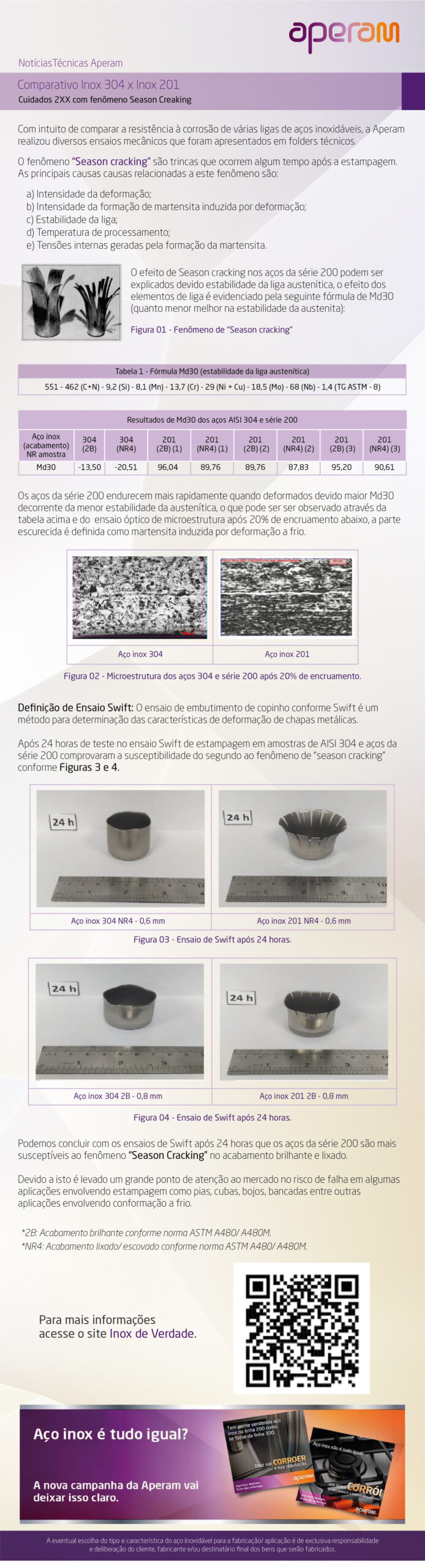 Comparativo Inox 304 x inox 201 - Cuidados 2XX com fenômeno Season Creaking