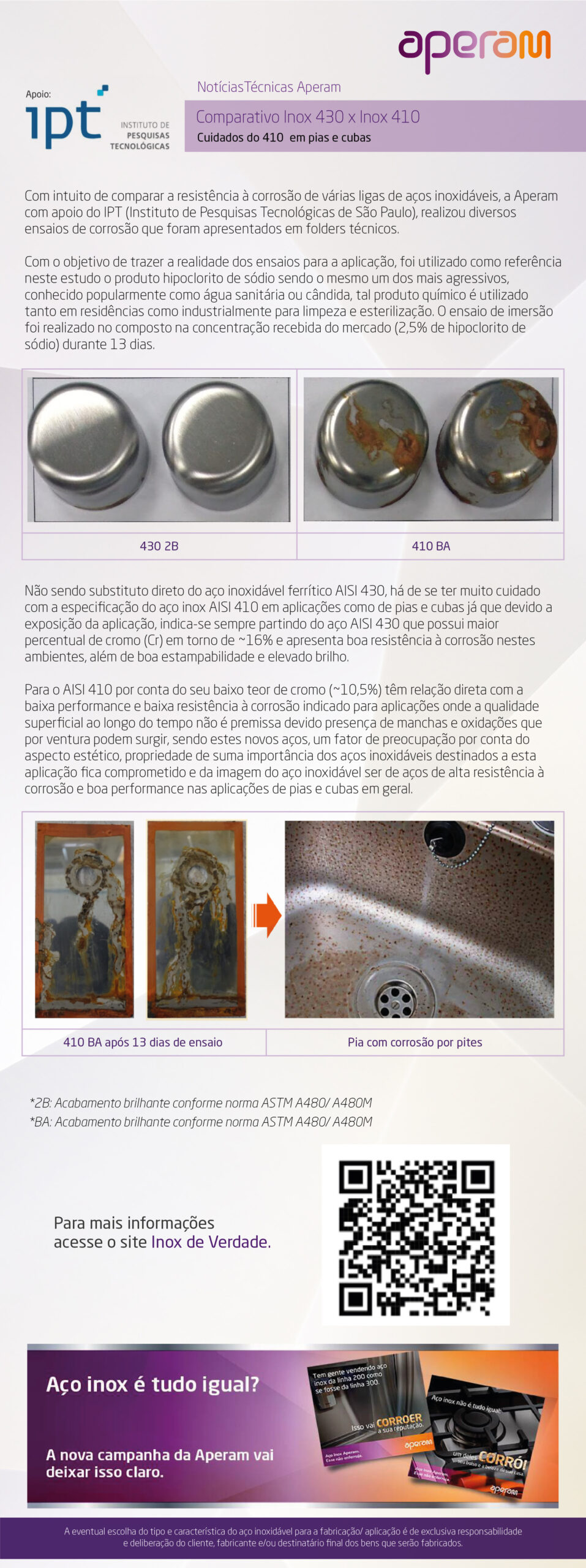Comparativo Inox 430 x 410 - Cuidados do 410 em pias e cubas