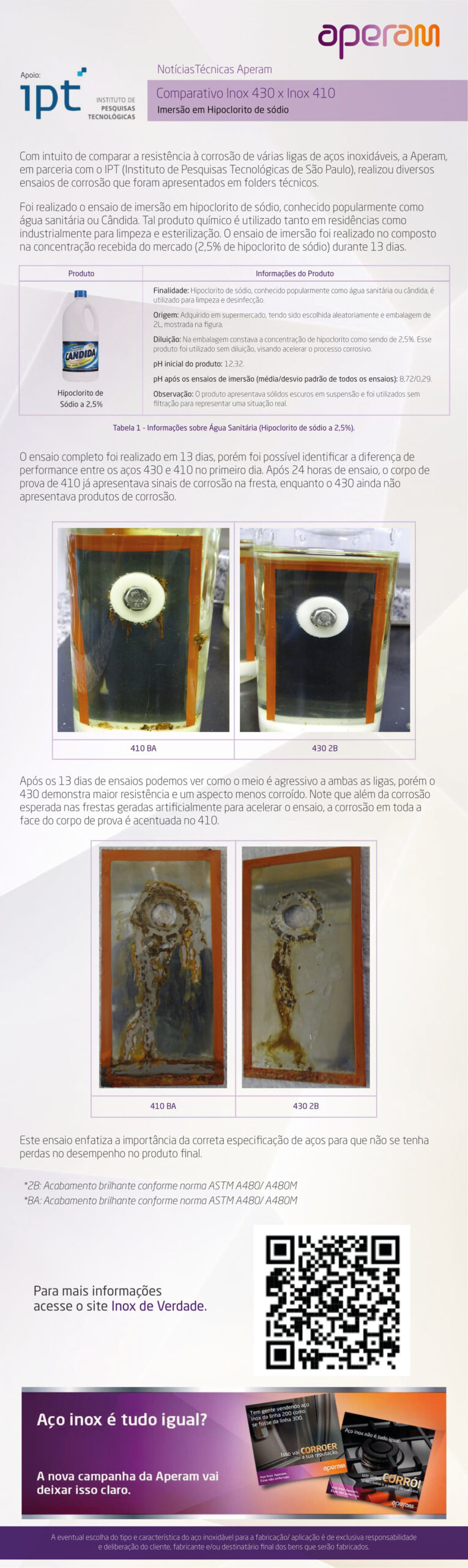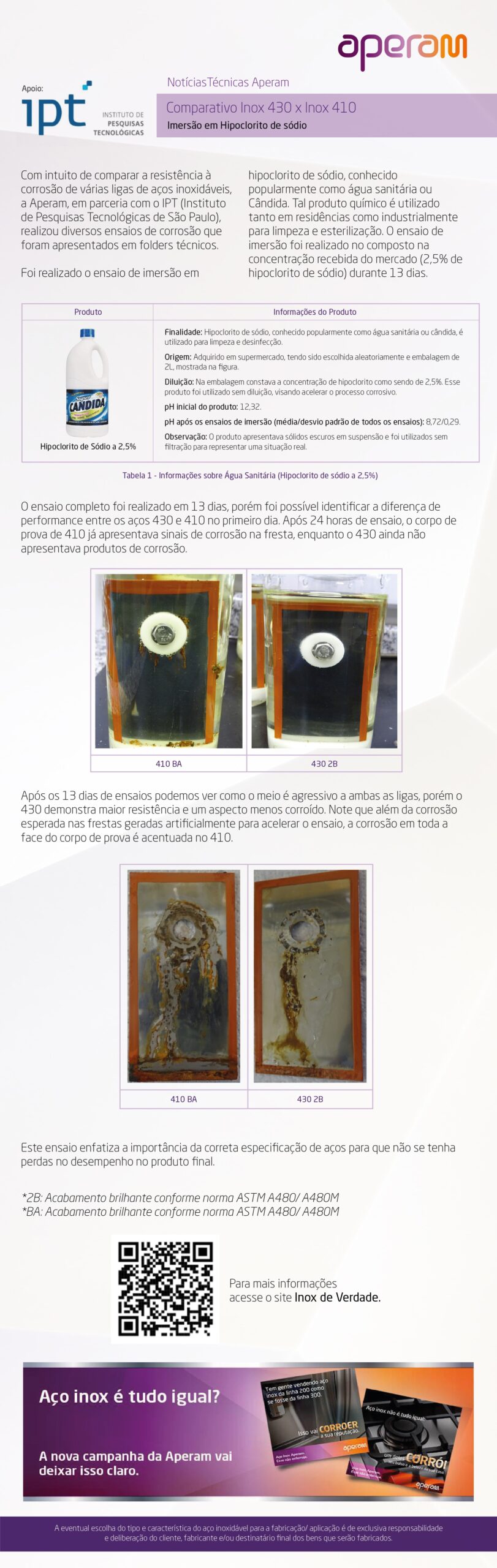 Comparativo Inox 430 X Inox 410 - Imersão em Hipoclorito de Sódio