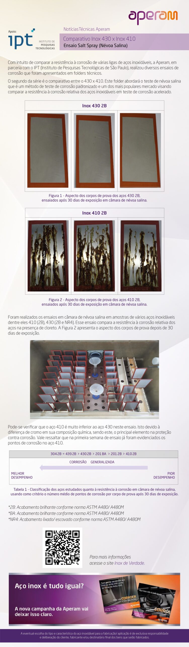 Comparativo Inox 430 X Inox 410 - Ensaio Salt Spray
