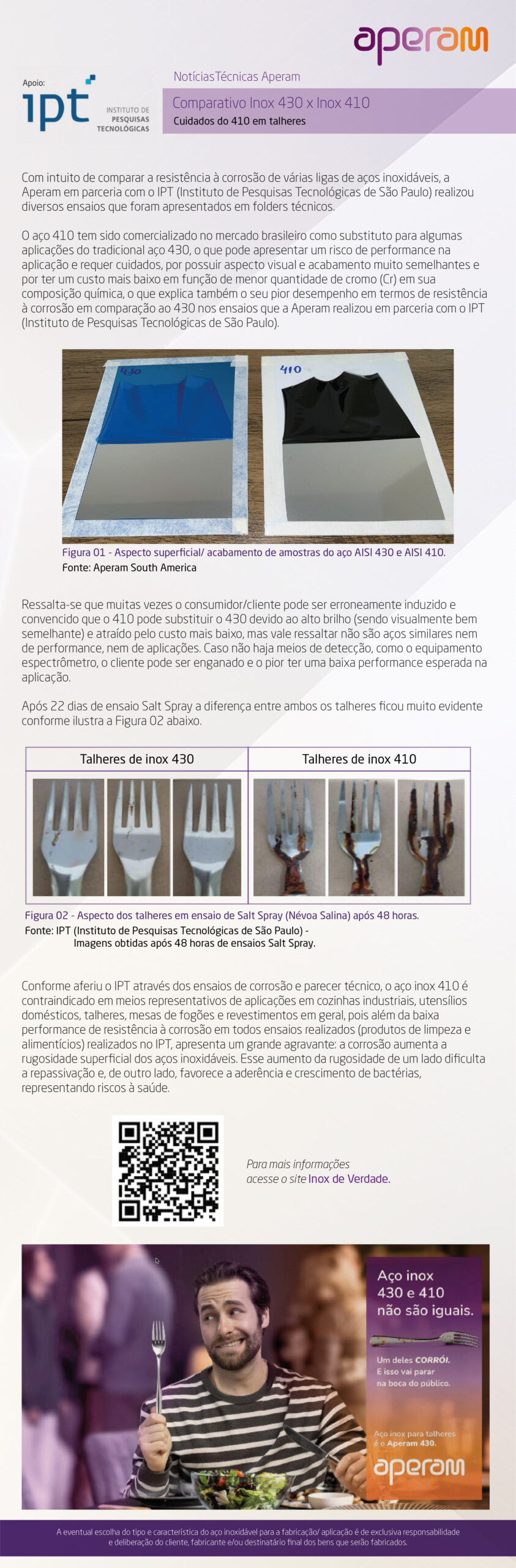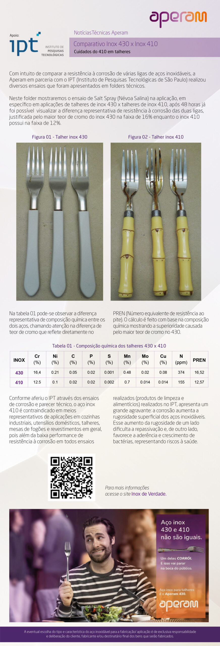 Comparativo Inox 430 X Inox 410 - Cuidados do 410 em talheres