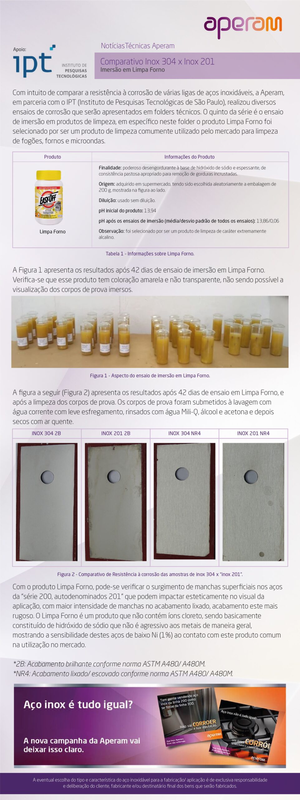 Comparativo Inox 304 X Inox 201 - Ensaio de Corrosão em Água Sanitária