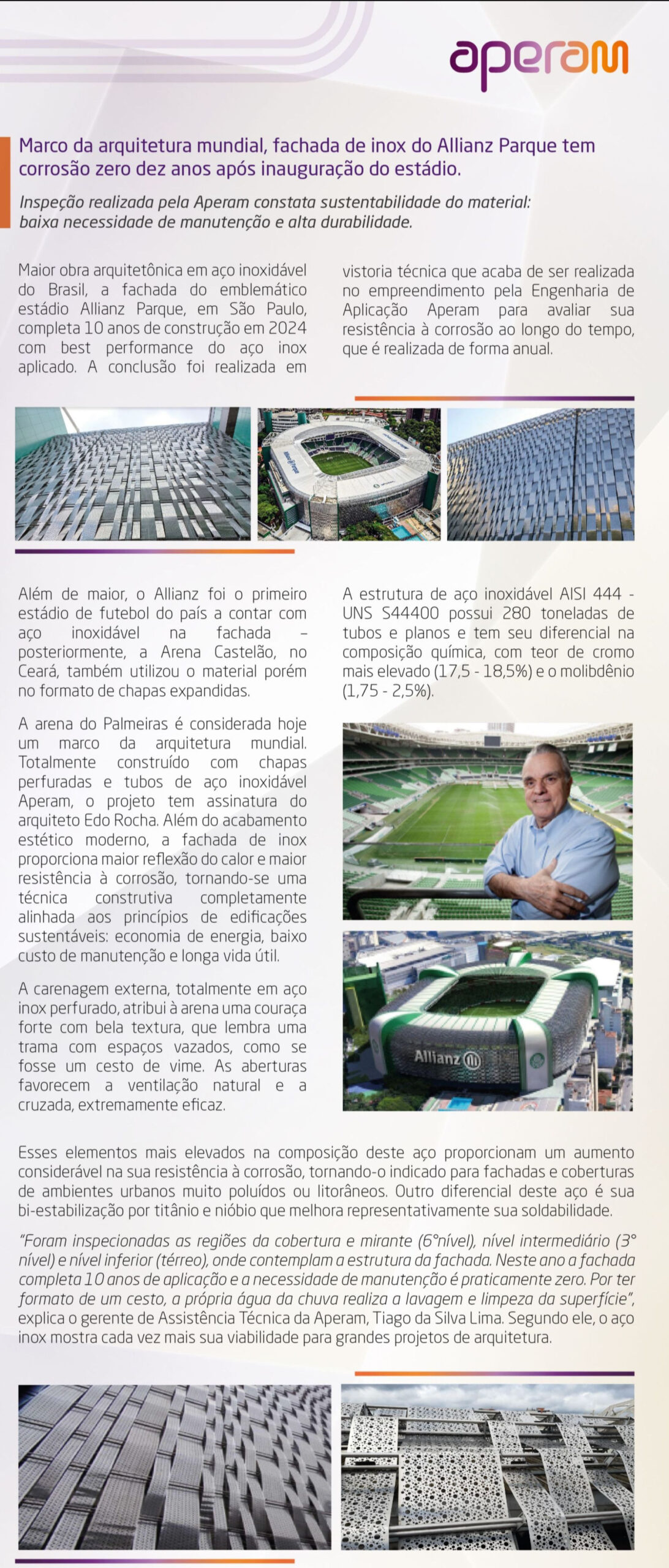 Inox Aperam na Arquitetura - Fachada do Allianz Parque