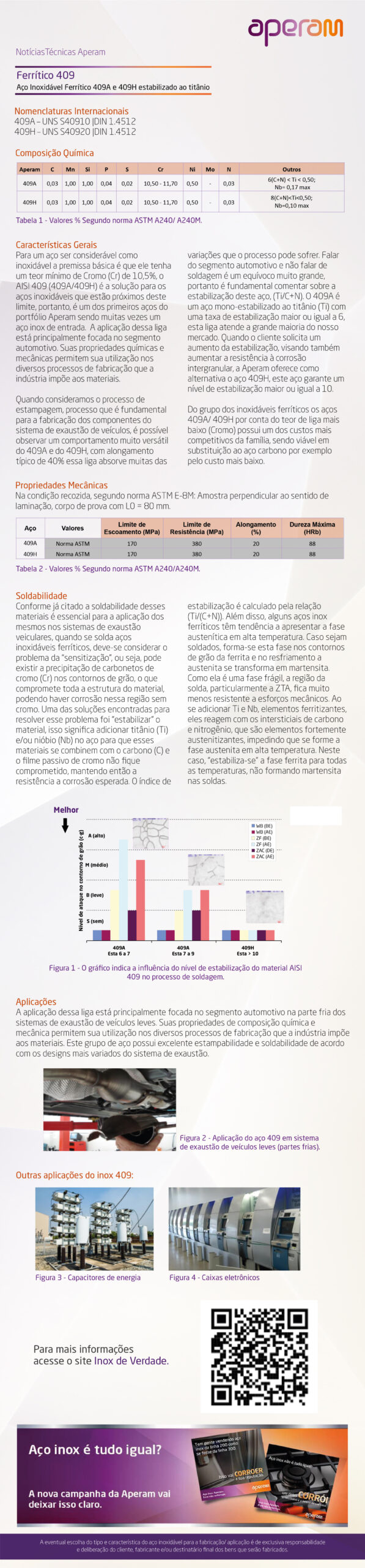 Ferrítico 409 - Aço Inoxidável Ferrítico 409A e 409H estabilizado ao titânio