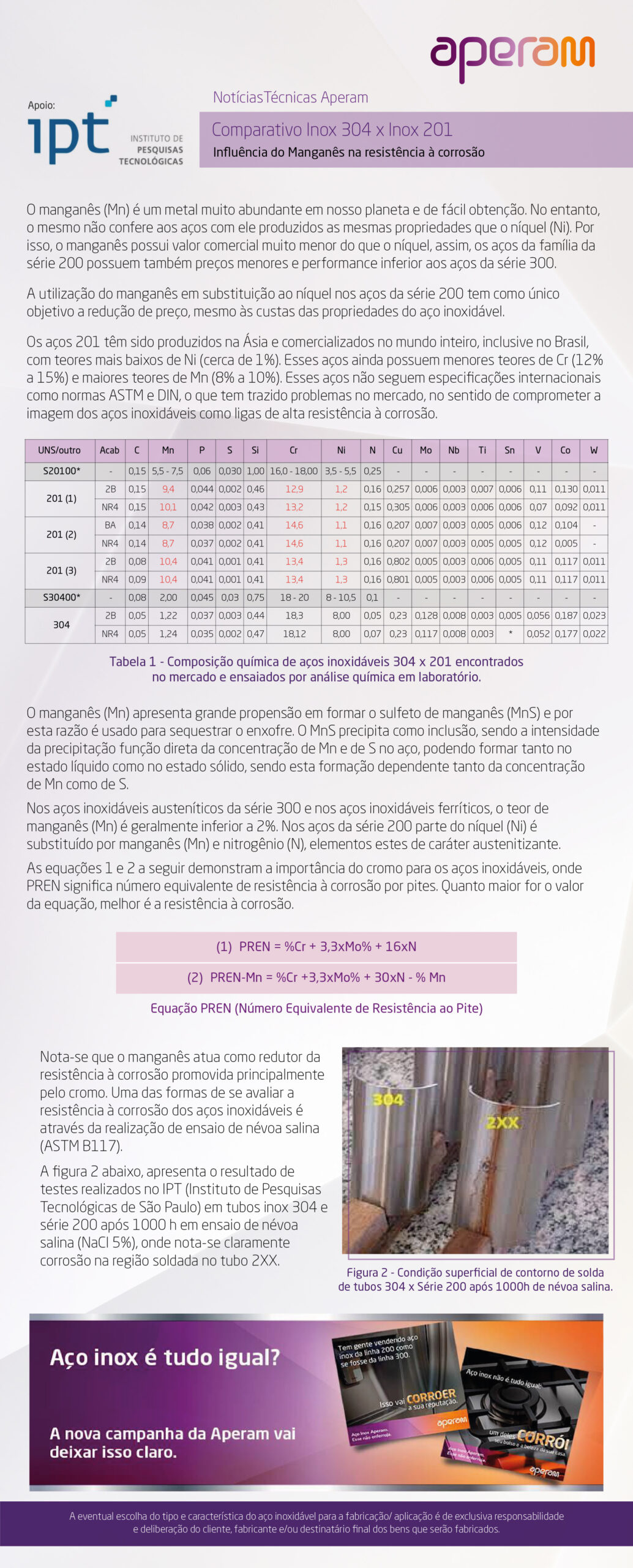 Comparativo Inox 304 x Inox 201: Influência do manganês na resistência à corrosão.